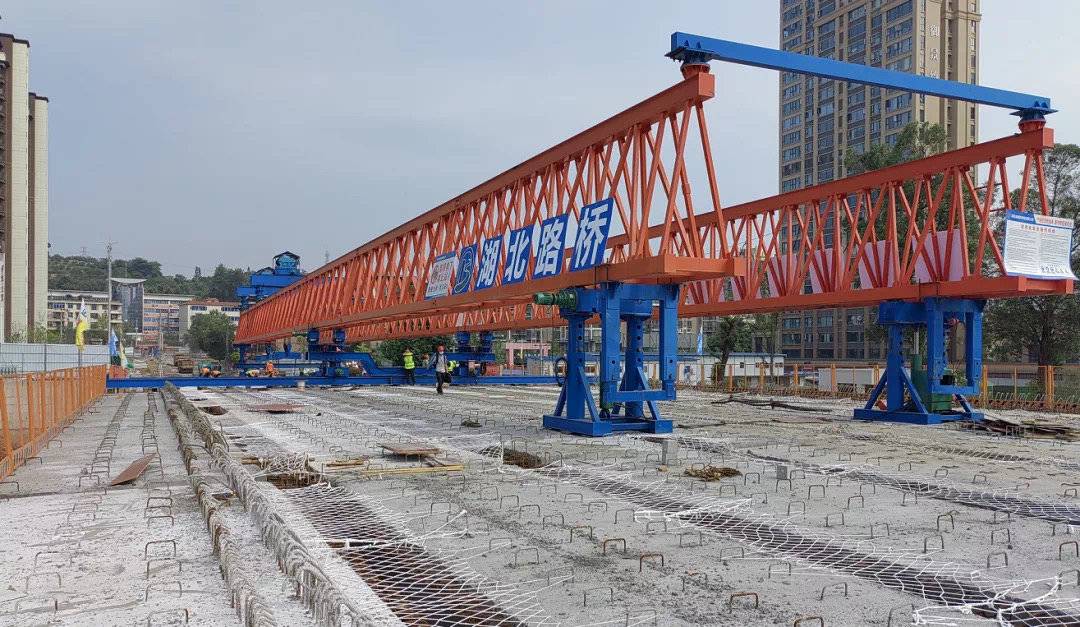 扫码、测温、登记……在经过一系列严格的疫情防控措施后,记者进入施工现场看到,身穿橘黄色背心的工人戴好口罩和安全帽分散在桥面上加紧施工,架桥机在高空来回运转,大货车载着材料不停进进出出。
