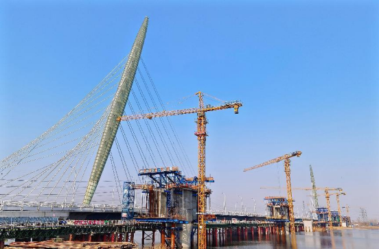 据了解,该铁路跨越约800米宽的独流减河,在修建跨河大桥过程中需要克服水中施工风险大、管线保护要求高等困难,项目施工团队也在不断优化施工方案、改进施工工艺。