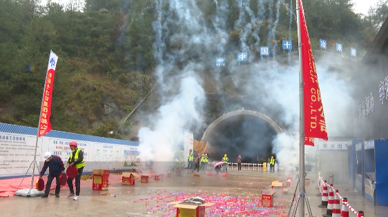 当天下午,伴着礼炮声,沙田头隧道左洞进口处举行了贯通仪式。